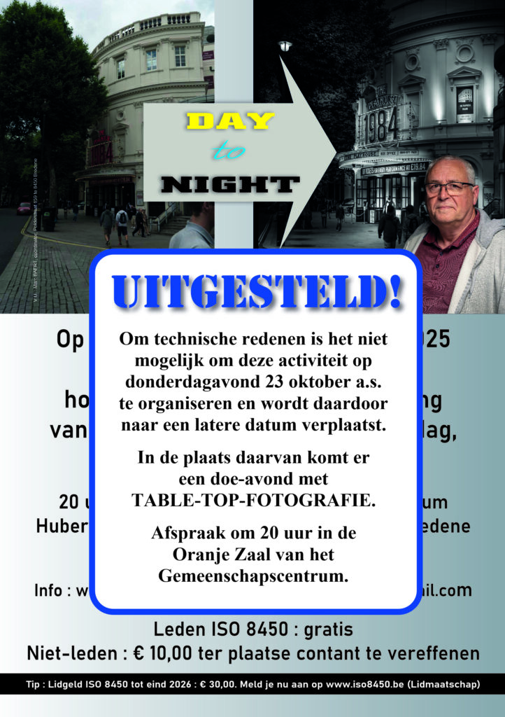 De doe-avond table top fotografie op 23 oktober jl. kwam er nadat het technisch (nog) niet mogelijk was om de geplande demonstratie “Day to night” …